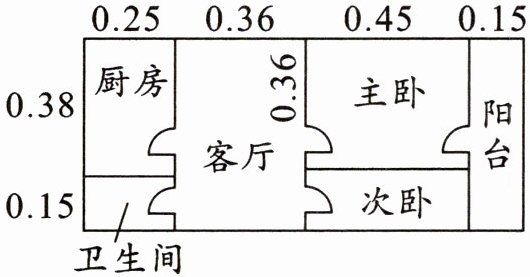 五 (新素材)如图是某宣传单页上的住房平面图,实际住房面积是单页上的 10000倍。主卧的实际面积比次卧大多少平方米?(单位:分米)