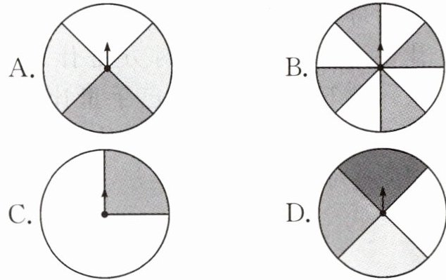 2. 下面是4个可以自由转动的转盘(大小一样),转动那个转盘指针最容易指向白色区域?(