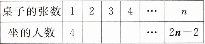 2n+2=2×12+2=26 答:并12张桌子能坐26人。