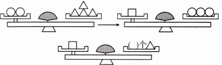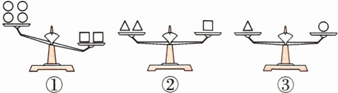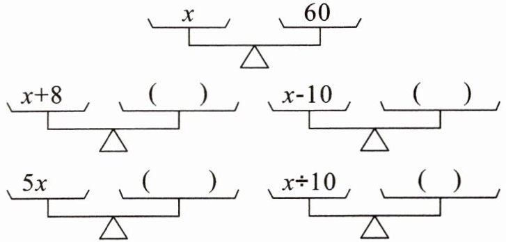 三 仔细观察,在每幅图的( )里填上适当的数,使天平平衡。