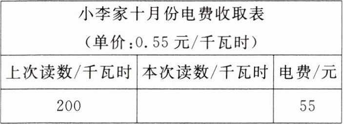 解:设小李家本次的电表读数是x千瓦时。