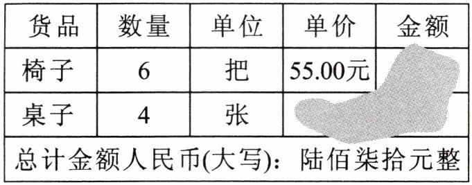 一张发票部分数据看不清,你能算出每张桌子多少钱吗?