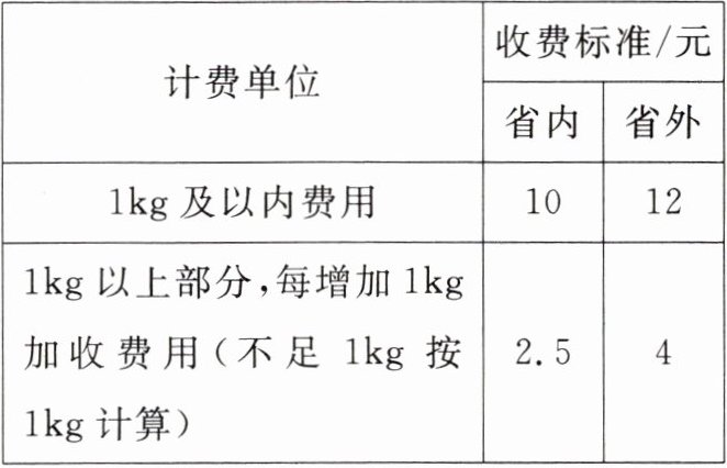 2. 王叔叔给省内的朋友寄了一些物品,共支付快递费 35 元,他寄的快递最多重多少千克?