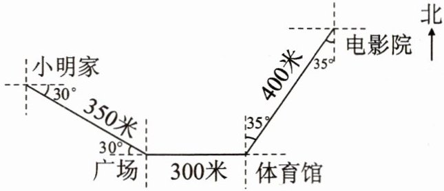 )米到达电影院。2. 电影结束,小明准备回家,他先向(