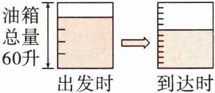 五(情境题)李叔叔自驾从家开往杭州,已知汽车长方体油箱的容积为 60 升,出发和到达时油箱里油量分别如下图,这次行程共消耗多少升汽油?