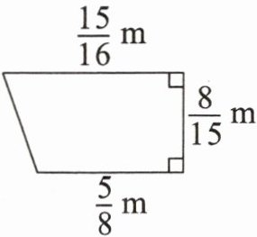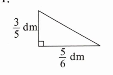1. $\frac{3}{5}× \frac{5}{6}× \frac{1}{2}=\frac{1}{2}× \frac{1}{2}=\frac{1}{4}(dm^2)$2. $(\frac{5}{8}+\frac{15}{16})× \frac{8}{15}× \frac{1}{2}=\frac{25}{16}× \frac{8}{15}× \frac{1}{2}=\frac{5}{12}(m^2)$