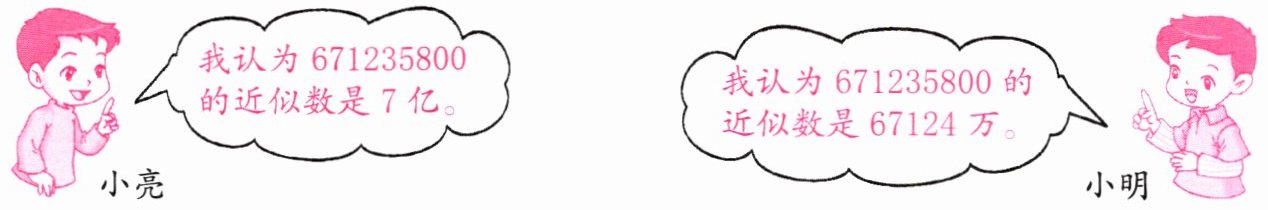 $671235800$千位上是$5$,$5 = 5$,则向万位进$1$,$3+1 = 4$,所以$671235800\approx67124$万,小明说得也对。