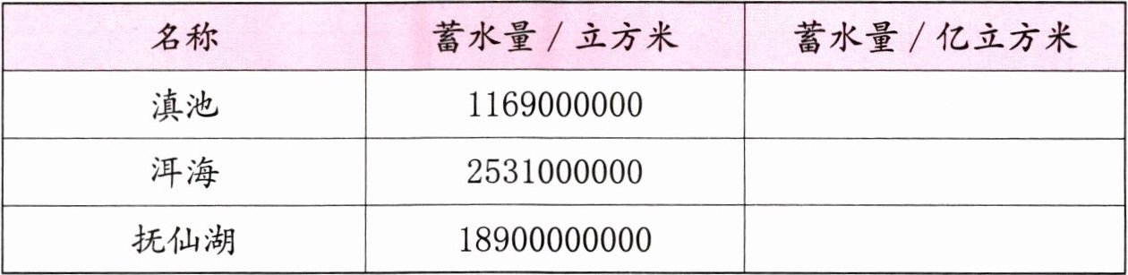 1. 下面为云南省部分湖泊蓄水量统计表,用四舍五入法省略亿位后面的尾数。