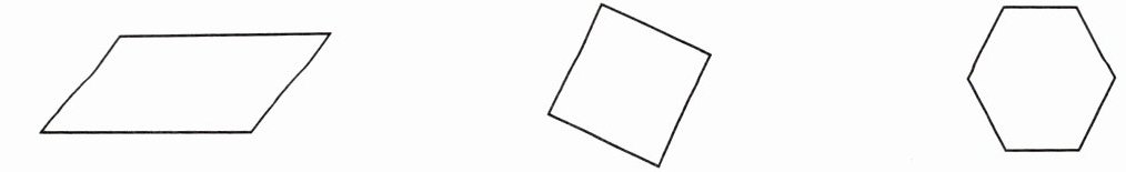 第一组图形(平行四边形):描图中互相平行的对边,一组为上下两条对边,用一种颜色描出;另一组为左右两条对边,用另一种颜色描出。
