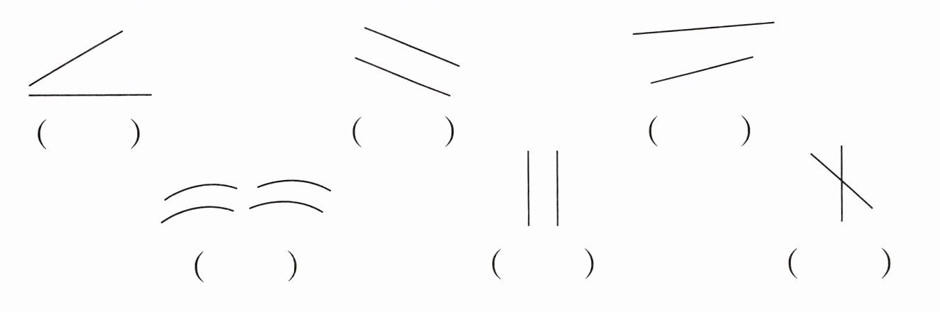 1. 下面哪组图形中的两条线是相互平行的? 在括号里画“√”。