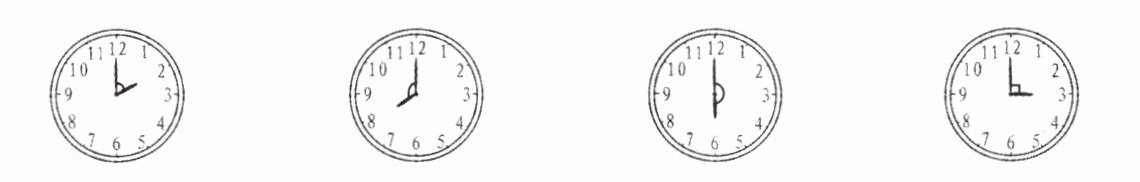 3. 每个钟面上时针和分针组成的角分别是什么角? 填一填。