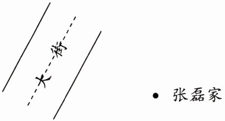 8. 张磊家新建了一座楼房,要从大街边上把自来水管接到家。怎样接比较节省?在图中画出来。