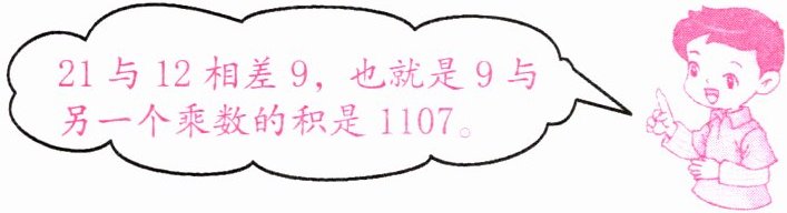 21 与 12 相差 9,也就是 9 与另一个乘数的积是 1107。