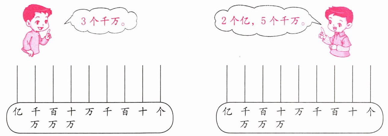 (第一幅图)在“千万”位对应的格子中画“3”,其余数位画“0”。