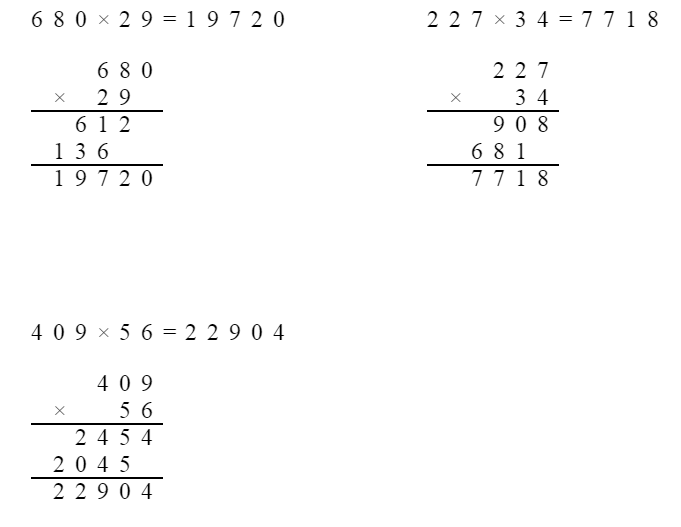 680×29= 227×34= 409×56=