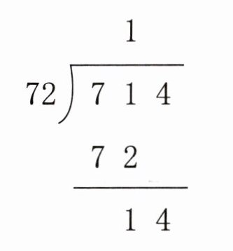 - 因为$714÷72$,$72×9 = 648$,$714 - 648=66$,$72×10 = 720>714$,所以商是$9$,余数是$66$。