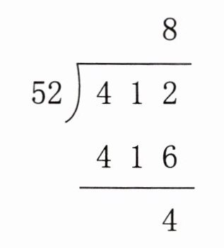 因为$412÷52$,$52×7 = 364$,$412-364 = 48$,$52×8=416>412$,所以商是$7$,余数是$48$。