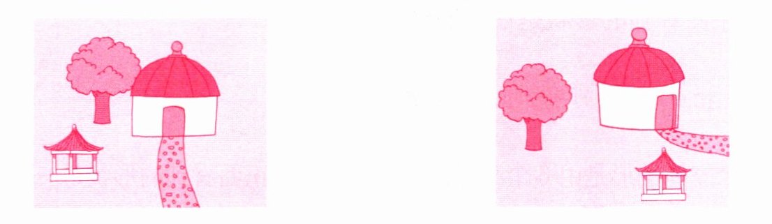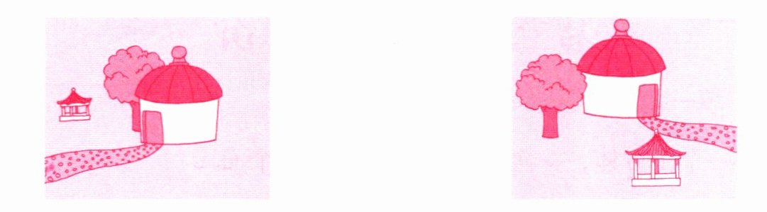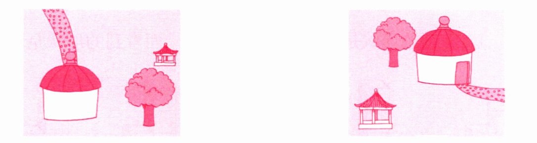 (2)下面两幅图,分别是从民俗展馆东、南、西、北四个方向的哪个方向看到的?