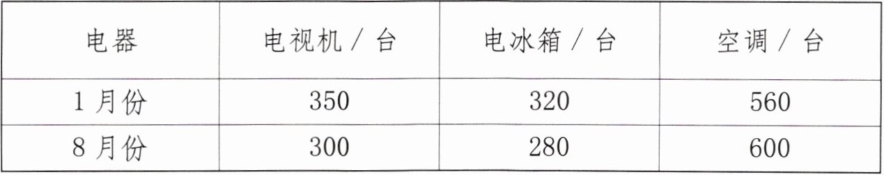 3. 下表是某商场今年 1 月份与 8 月份部分电器的销售情况。