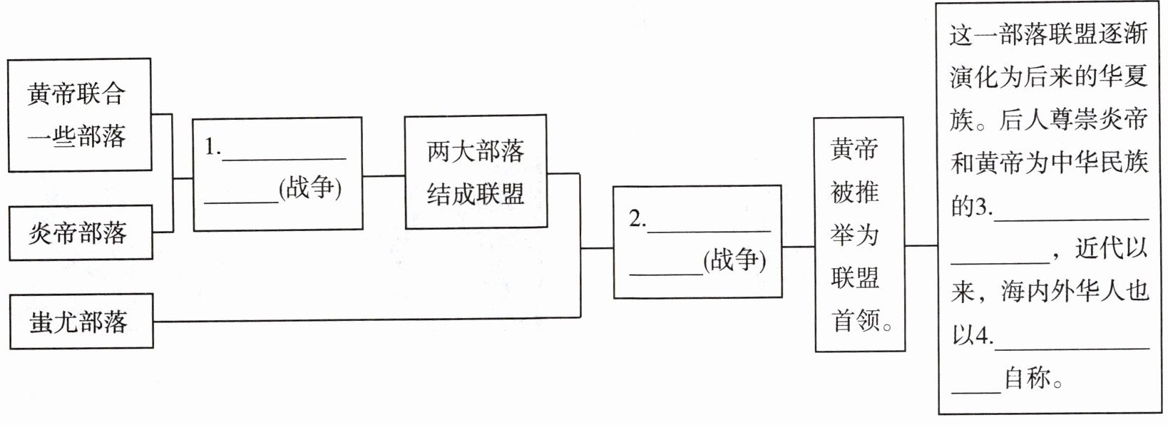 1.阪泉之战;2.涿鹿之战;3.人文初祖;4.炎黄子孙