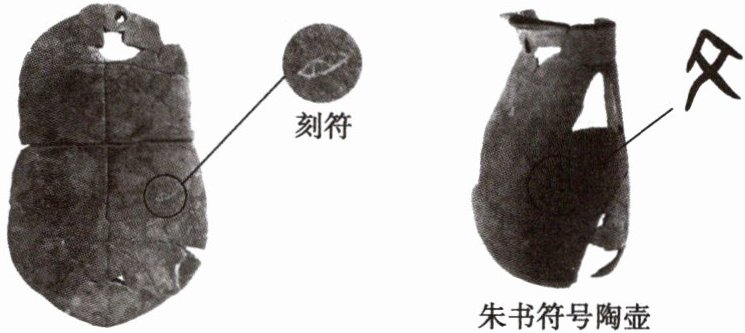 6. 下图为舞阳贾湖遗址出土的刻符龟甲与陶寺遗址出土的朱书符号陶壶,二者共同反映了【