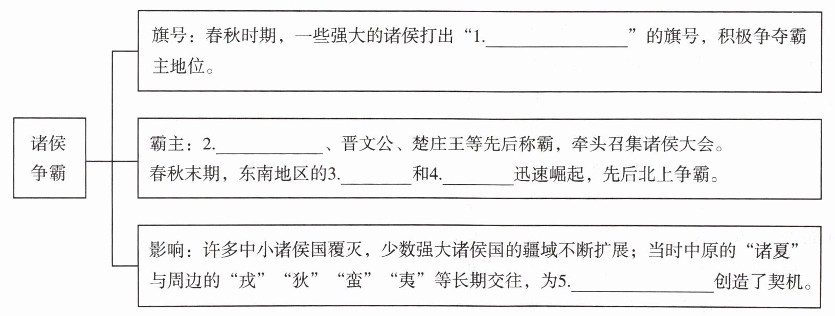 1. 尊王攘夷;2. 齐桓公;3. 吴国;4. 越国;5. 民族交融。