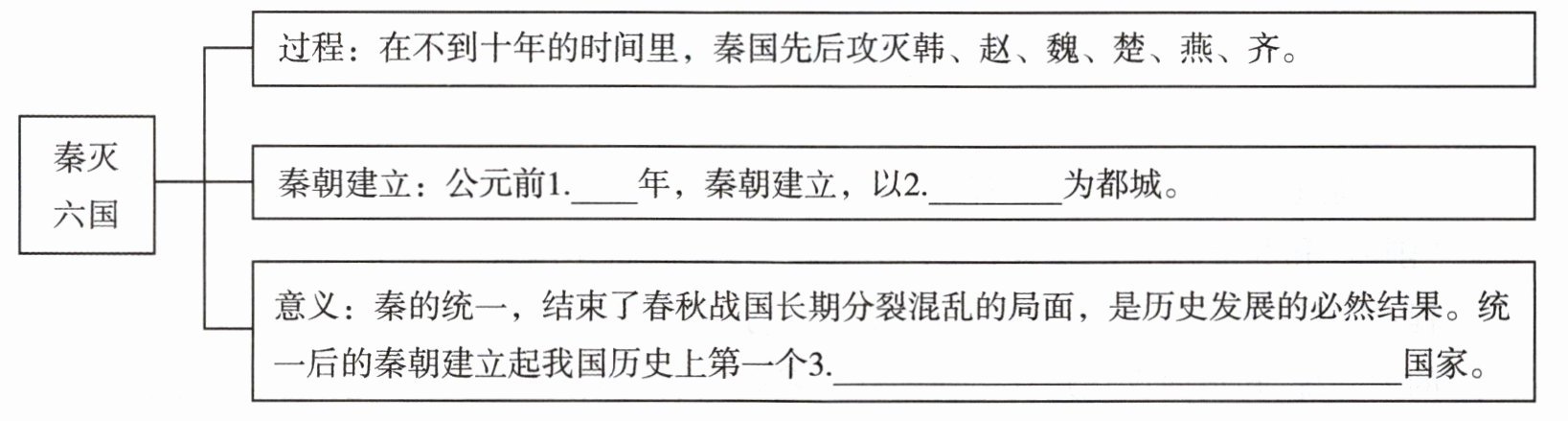 为都城。|| |意义:秦的统一,结束了春秋战国长期分裂混乱的局面,是历史发展的必然结果。统一后的秦朝建立起我国历史上第一个3.