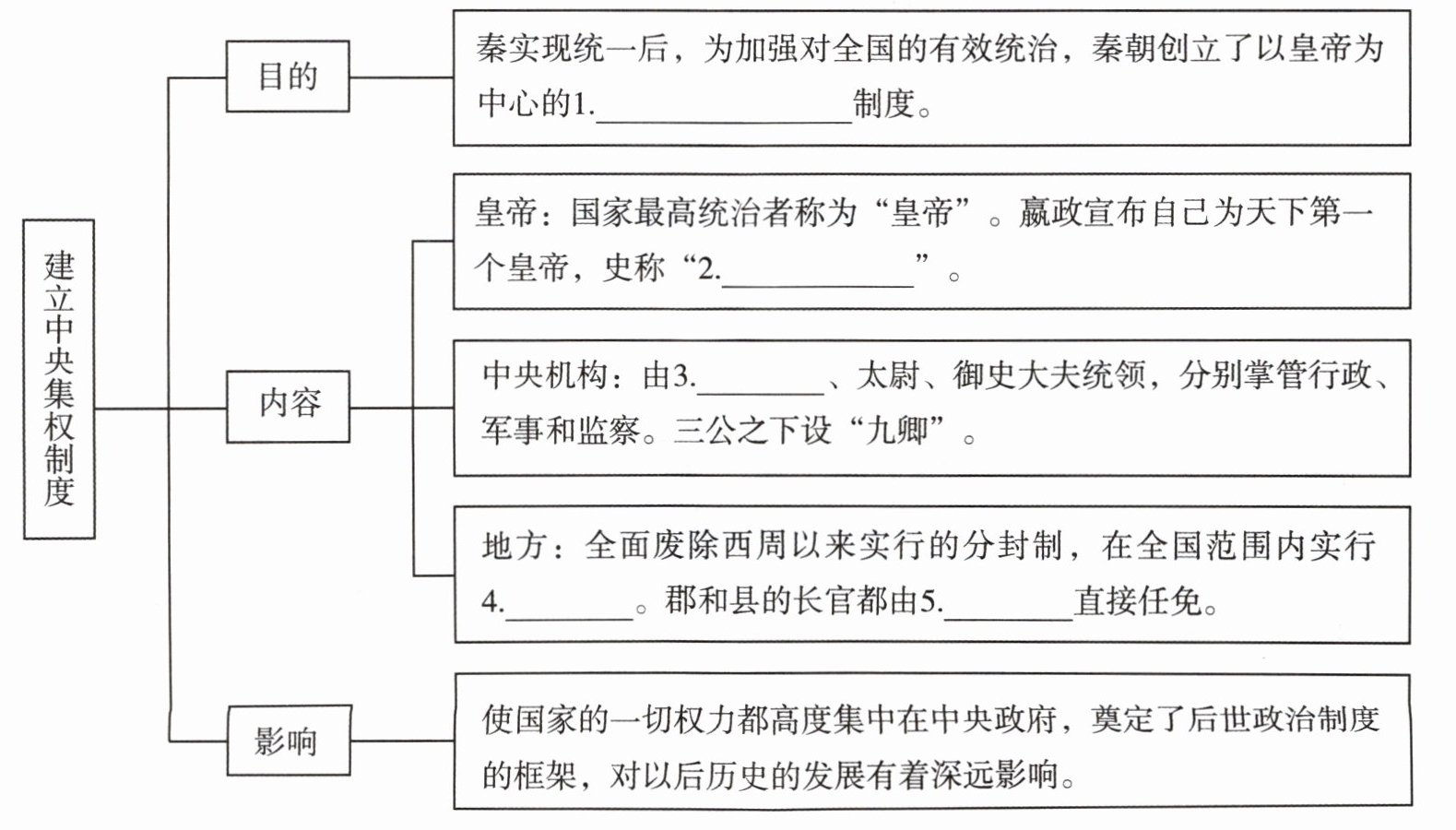 |建立中央集权制度|目的|秦实现统一后,为加强对全国的有效统治,秦朝创立了以皇帝为中心的1.