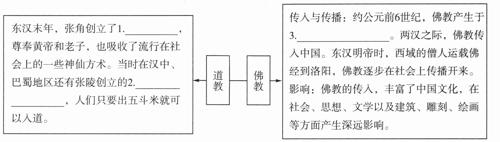 。两汉之际,佛教传入中国。东汉明帝时,西域的僧人运载佛经到洛阳,佛教逐步在社会上传播开来。影响:佛教的传入,丰富了中国文化,在社会、思想、文学以及建筑、雕刻、绘画等方面产生深远影响。|