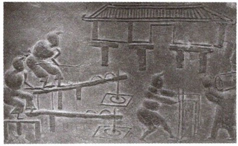 14. (2024·重庆B卷)如图所示为我国古代劳动者利用杠杆原理进行谷物加工的场景:左边3人扶在栏杆一头,借用身体下压的力量,启动杆头,达到舂米的效果。据此可知【