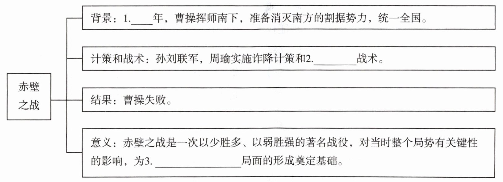 年,曹操挥师南下,准备消灭南方的割据势力,统一全国。||计策和战术:孙刘联军,周瑜实施诈降计策和2.