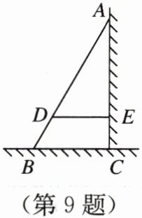 9. 如图,$ AB $ 是斜靠在墙上的长梯,梯脚 $ B $ 距墙脚 1.6 m,梯上点 $ D $ 距墙 1.4 m,$ BD $ 的长为 0.55 m,则梯子的长为 【