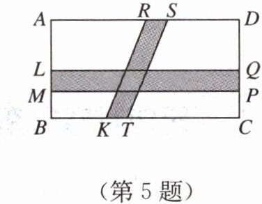 5. 如图,在矩形花园 $ABCD$ 中,$AB = a$,$AD = b$,花园中建有一条矩形道路 $LMPQ$ 及一条平行四边形道路 $RSTK$. 若 $LM = RS = c$,求花园中可绿化部分的面积.