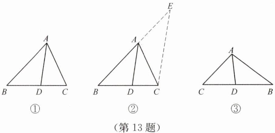 证明:如图②,过点 $ C $ 作 $ CE // DA $,交 $ BA $ 的延长线于点 $ E $……