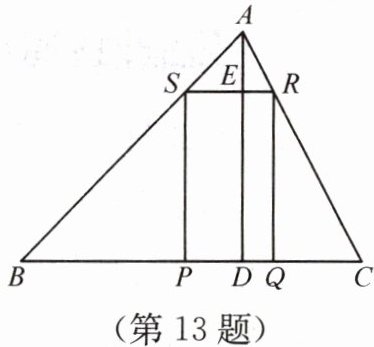 13. 如图,在$\triangle ABC$中,底边$BC = 60cm$,高$AD = 40cm$,四边形$SPQR$是矩形,且$SR:SP = 1:2$,求矩形$SPQR$的面积.