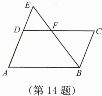 14. 如图,在$□ ABCD$中,点$E在AD$的延长线上,$BE与CD相交于点F$.