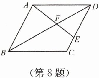 8. 如图,在$□ ABCD$中,$E是边CD$上一点,$AE$、$BD相交于点F$,若$DE = 2EC$,则$\triangle DEF与\triangle ABF$的周长比为【