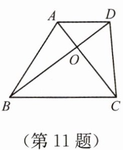 11. 如图,在四边形$ABCD$中,$AD// BC$,$AC$、$BD相交于点O$,$S_{\triangle AOD}:S_{\triangle COB} = 1:9$,则$S_{\triangle DOC}:S_{\triangle BOC} = $【