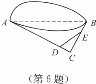 6. 如图,点 $ D $、$ E $ 分别在 $ AC $、$ BC $ 上,如果测得 $ CD = 20m $,$ CE = 40m $,$ AD = 100m $,$ BE = 20m $,$ DE = 45m $,求 $ A $、$ B $ 两地间的距离。