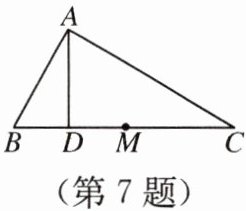 7. 如图,$ AD $ 为 $ \triangle ABC $ 的高,$ \angle B = 2\angle C $,$ M $ 为 $ BC $ 的中点,求证:$ DM = \frac{1}{2}AB $。