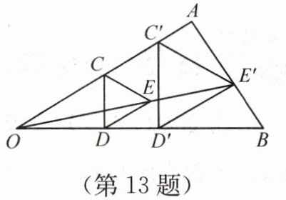 13. 如图,用下面的方法可以画$\triangle AOB$的内接等边三角形.