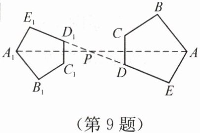 9. 如图,五边形$ABCDE和五边形A_1B_1C_1D_1E_1$是位似图形,且$PA_1= \frac{2}{3}PA$,则$AB:A_1B_1$等于【