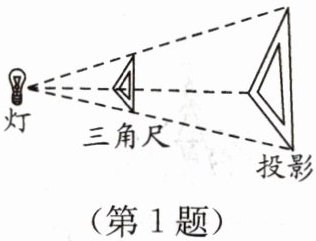 1. (荆州)如图,位似图形由三角尺与其灯光照射下的中心投影组成,相似比为$2:5$,且三角尺的一边长为$8cm$,则投影三角形的对应边长为【