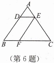 6. 如图,在$\triangle ABC$中,$AB = 3AD$,$DE// BC$,$EF// AB$。若$AB = 9$,$DE = 2$,则线段$FC$的长度是【