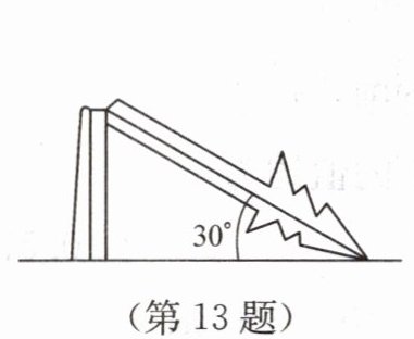 13. 如图,一棵大树在一次强台风中于离地面$5\,m$处折断倒下,倒下部分与地面成$30^{\circ}$的夹角,这棵大树在折断前的高度为【