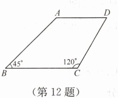 12. 如图,在梯形$ABCD$中,$AD// BC$,$\angle B = 45^{\circ}$,$\angle C = 120^{\circ}$,$AB = 8$,则$CD$的长为【