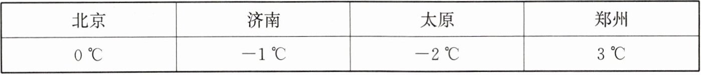 2. (浙江中考)下表是四个城市某天中午12时的气温,其中气温最低的城市是【