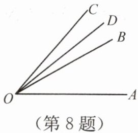 8. 如图,$\angle AOB = 30^{\circ}$,$\angle BOC = 20^{\circ}$,$OD$ 平分 $\angle BOC$,则 $\angle AOD= $