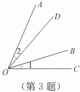2. 已知 $OC$ 平分 $\angle AOB$,有下列各式:① $\angle AOC= \frac{1}{2}\angle AOB$;② $\angle AOC= \angle COB$;③ $\angle AOB = 2\angle AOC$。其中,正确的有【
