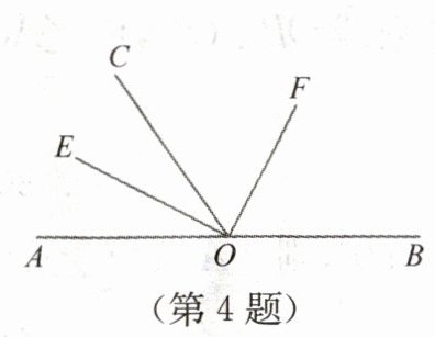 4. 如图,点 $A$、$O$、$B$ 在同一条直线上,$OE$ 平分 $\angle AOC$,$OF$ 平分 $\angle COB$,则 $\angle EOF= $【